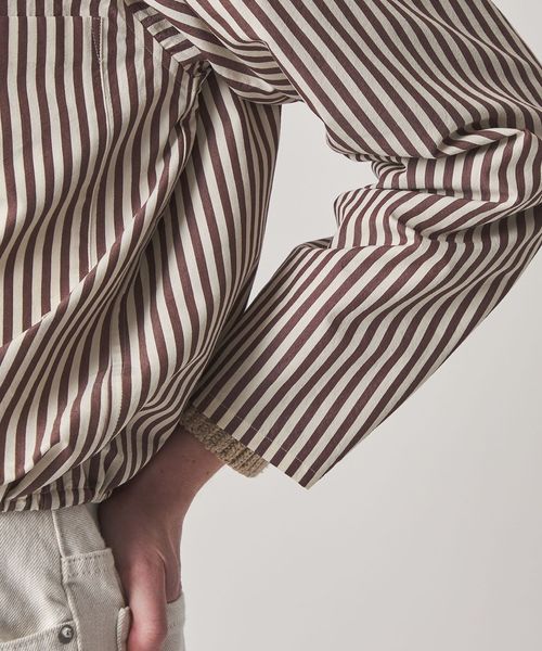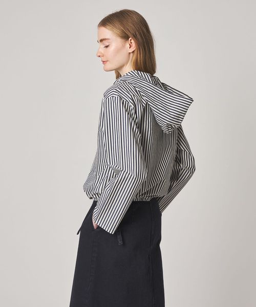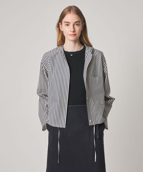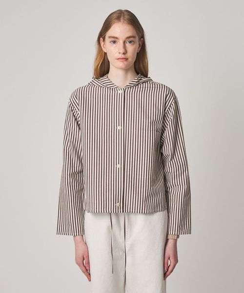 <Steven Alan>コットン キュプラ ストライプ フード シャツ