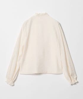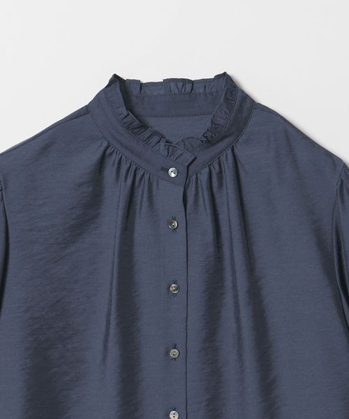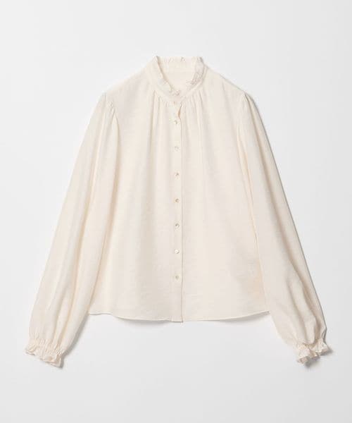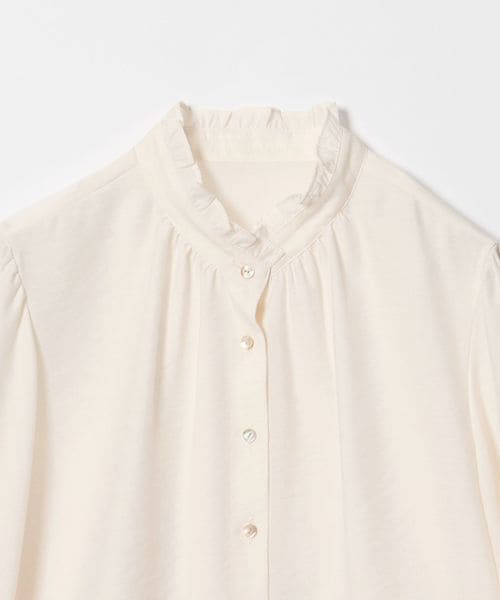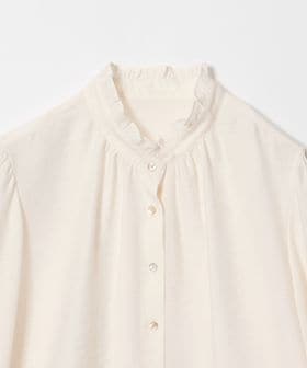 ネック部分と袖口にあしらわれたフリルが、さりげない華やかさを添えるフリルブラウス。