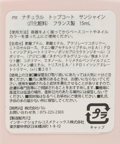 容器をよく振ってからベースコートやネイルカラーを塗った上にご使用ください。