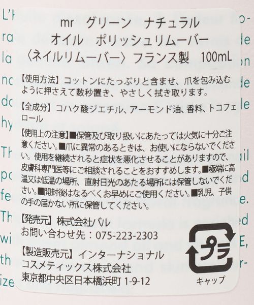 植物由来成分、アセトンフリーの「green」のポリッシュリムーバーは、ネイルポリッシュを優しく落とします。