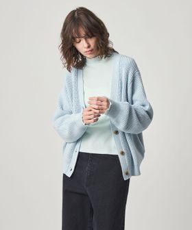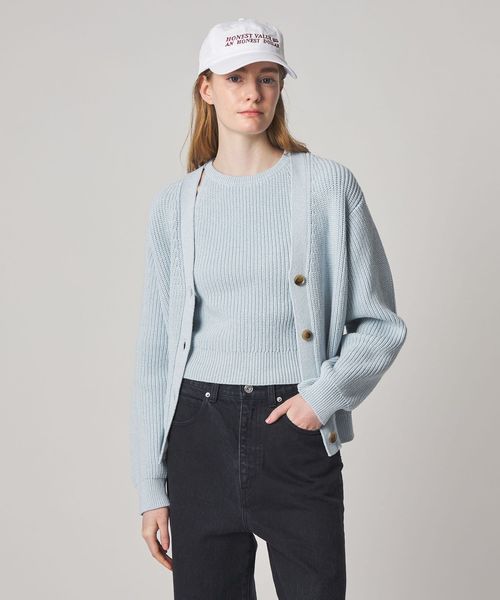 立体的な編地が特徴の、ミニマルなVネックカーディガン。