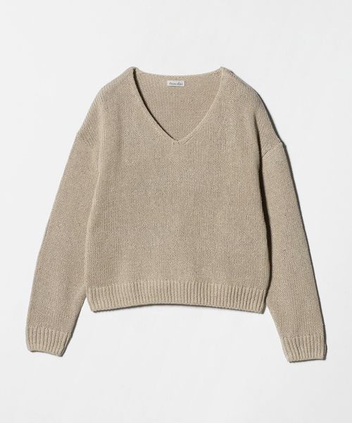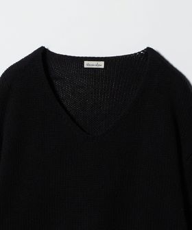すっきりと開けたVネックにゆとりのあるシルエットで仕上げた抜け感が魅力のニット。