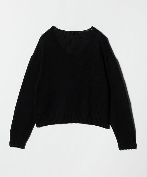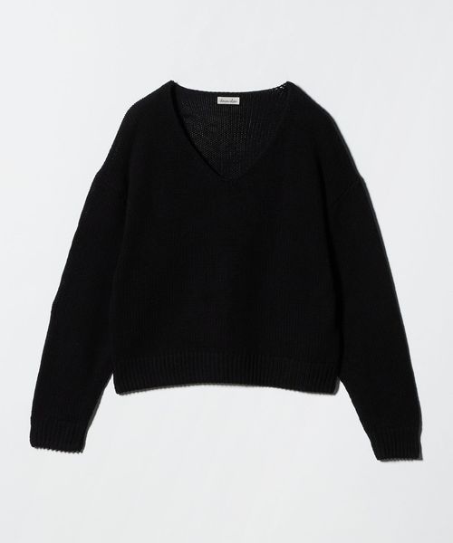 すっきりと開けたVネックにゆとりのあるシルエットで仕上げた抜け感が魅力のニット。