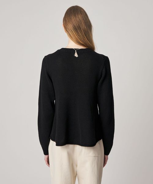 裾に向かって緩やかに広がるフレアが上品な印象のニット。