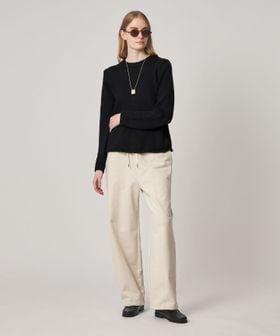 開きの少ないクルーネックに、美しいフレアシルエットを際立たせたやや長めの着丈がポイントです。