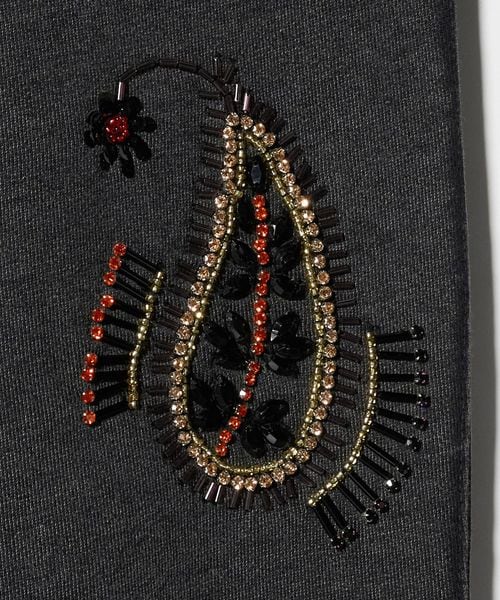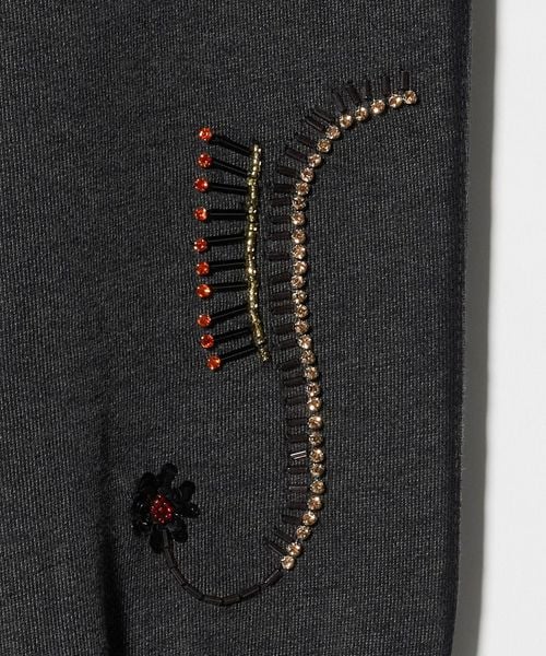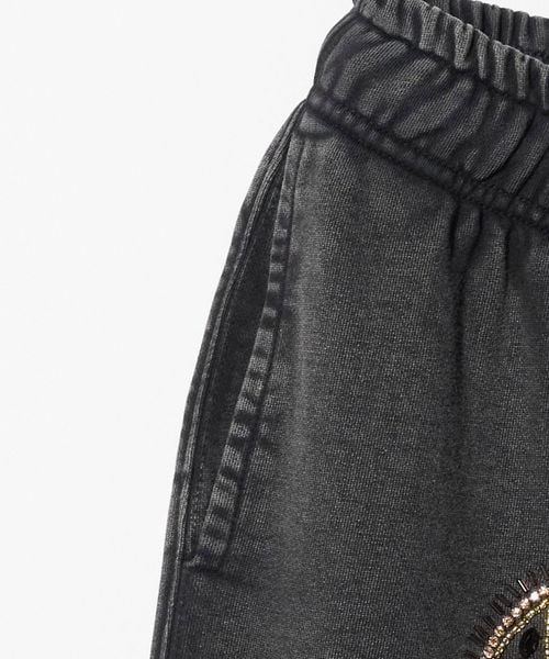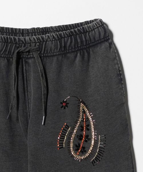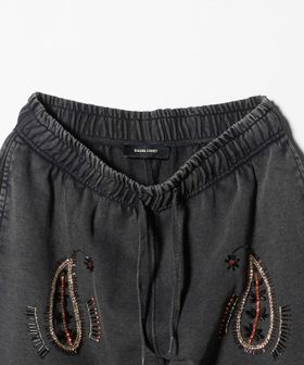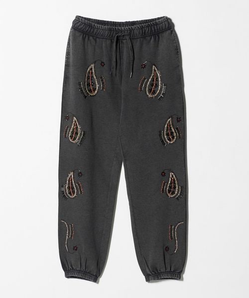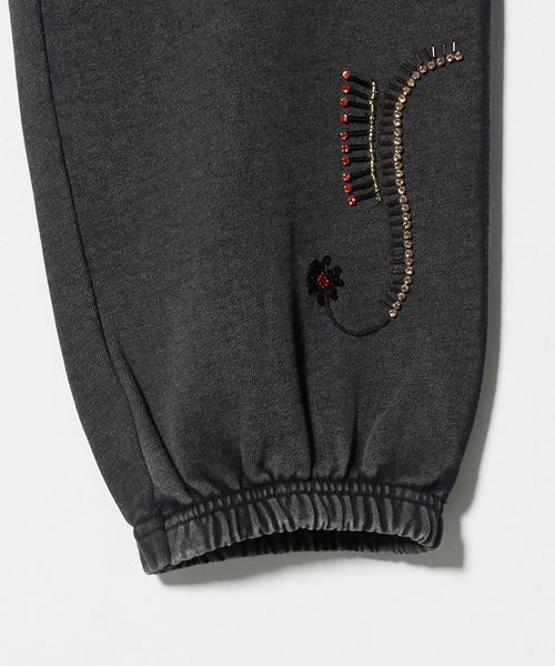イージーなスウェットパンツにビーズの刺繍が施されたパンツ。