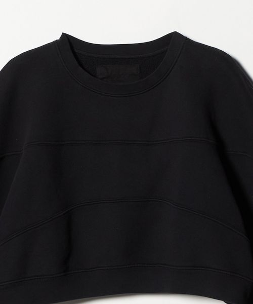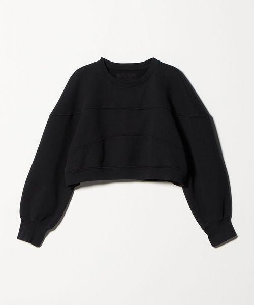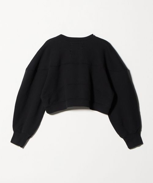 コットン素材を使用した、ボックス型のクロップド丈のスウェットシャツ。