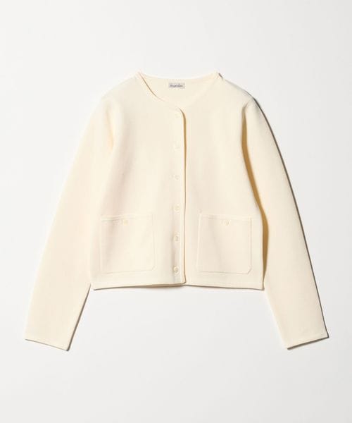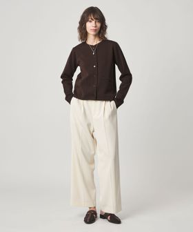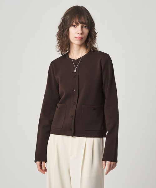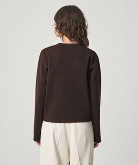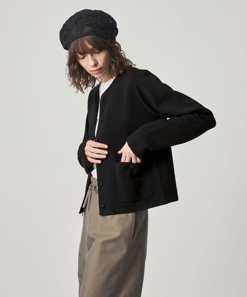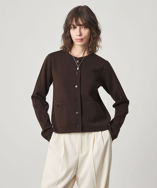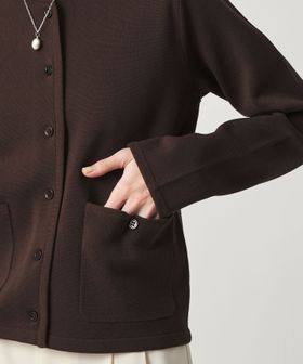 やや短めの着丈に繊細なフロントボタンを配した、上品な佇まいのカーディガン。