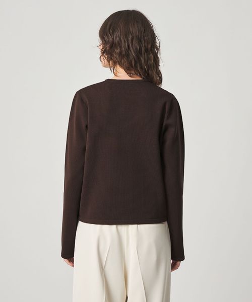 ハリとコシを備えたミラノリブ編みは、シルエットを美しく保ちながらもやわらかな着心地。