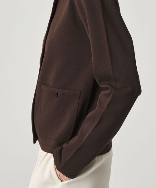 色ごとに合わせた同色ボタンと端正なフロントポケットが、ジャケットのような洗練された雰囲気を演出します。