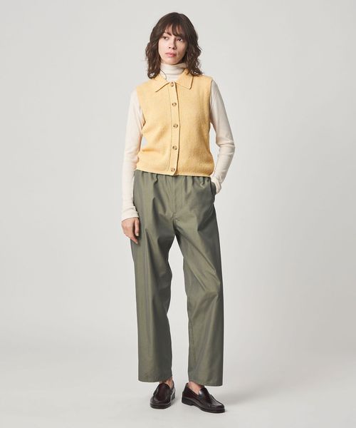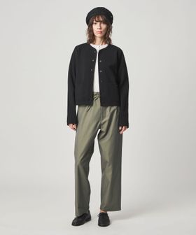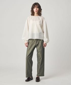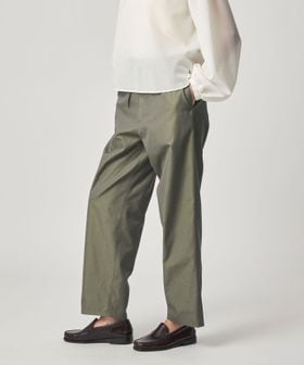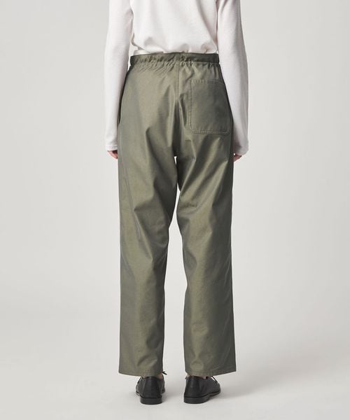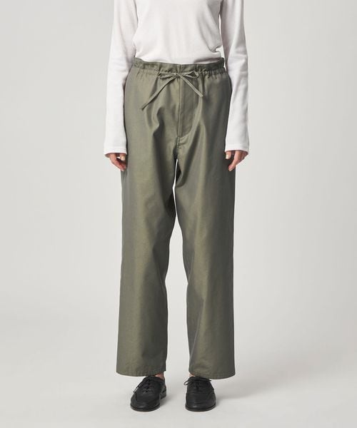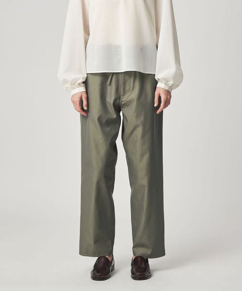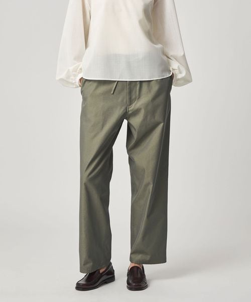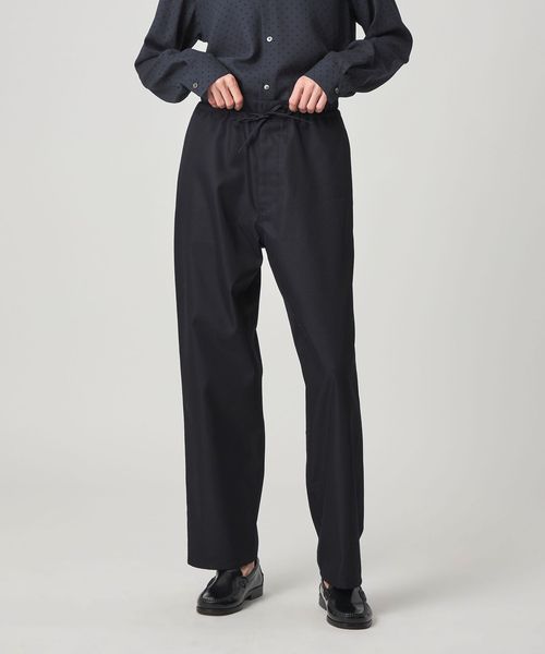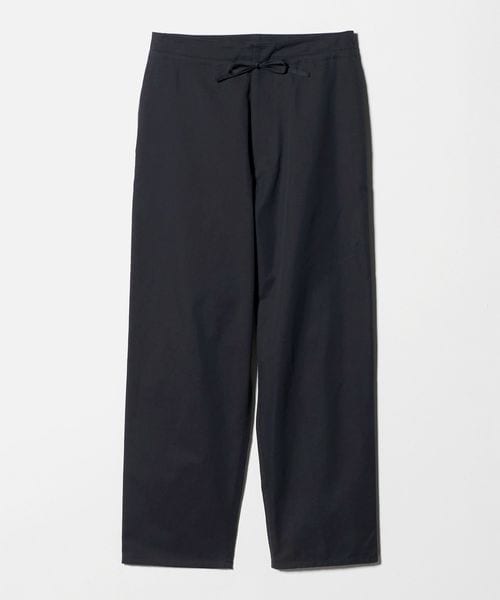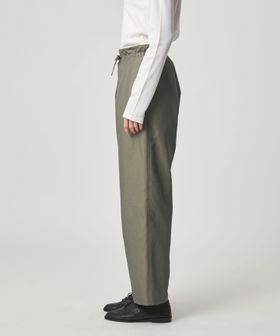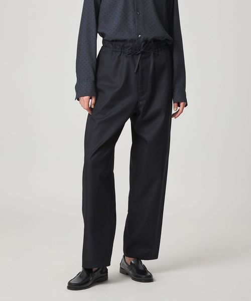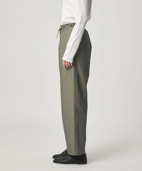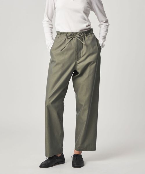 ワークパンツをデザインソースに、ウエストを紐で結ぶディテールを取り入れ、シンプルながらこなれ感のある雰囲気に仕上げました。