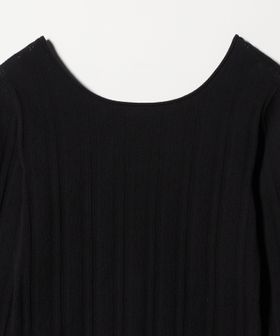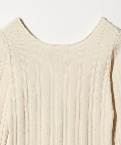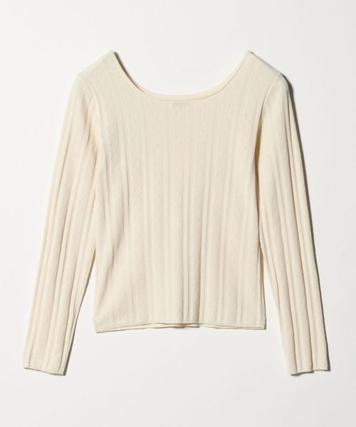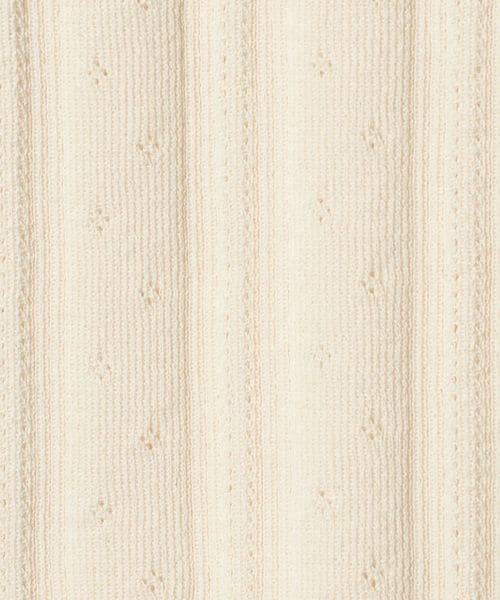 コットン×ポリエステルのさらりとした糸を使用し、総針編みにアイレット柄を施すことで、さりげない表情感をプラスしています。