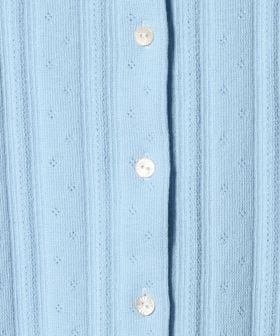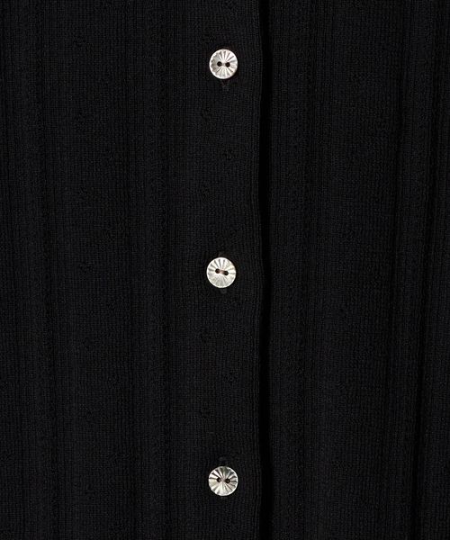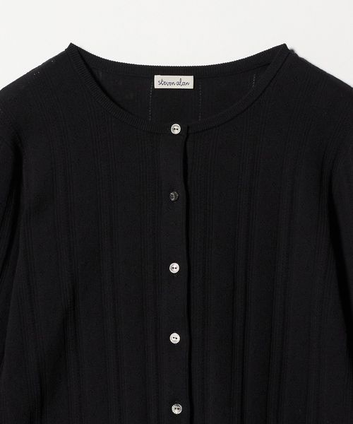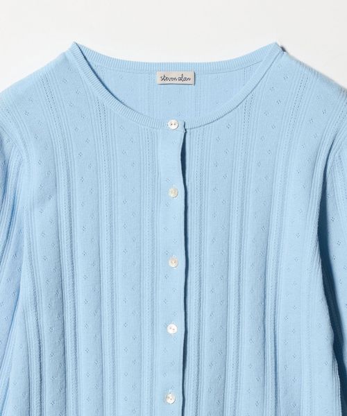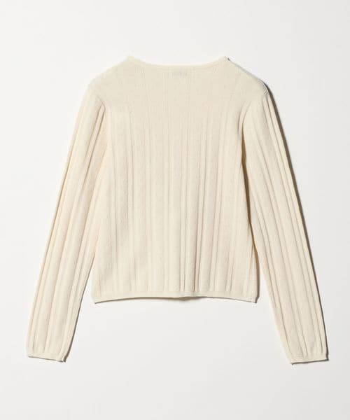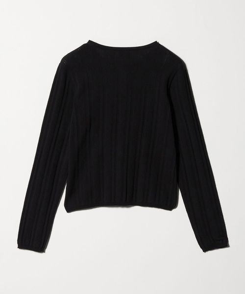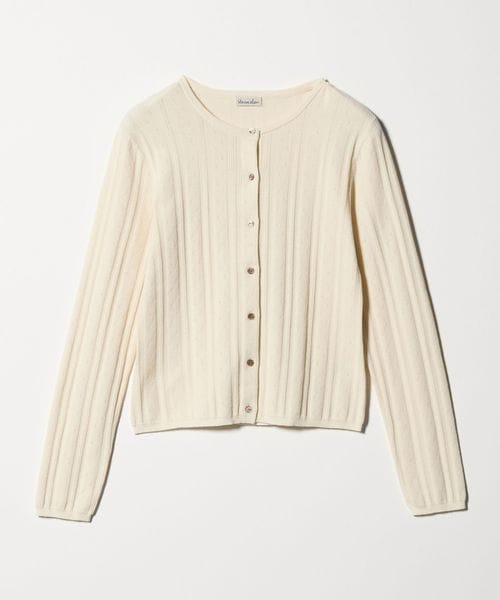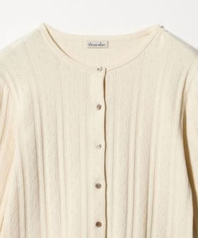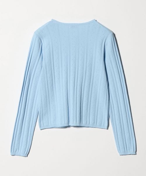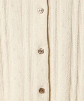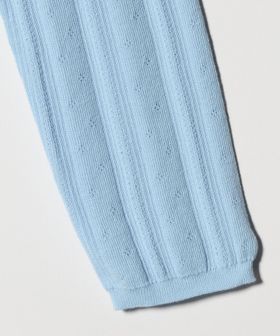 コットン×ポリエステルのさらりとした糸を使用し、総針編みにアイレット柄を施すことで、さりげない表情感をプラスしています。