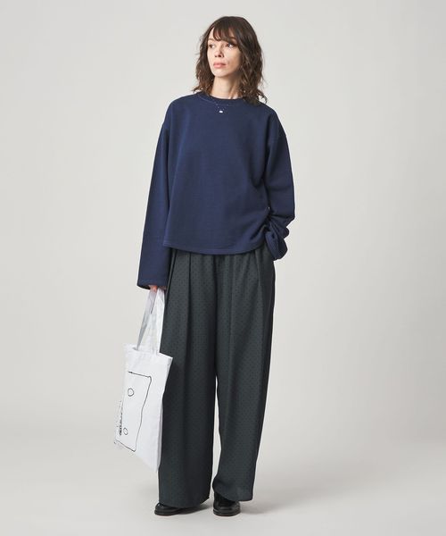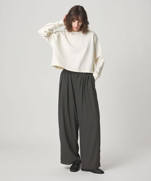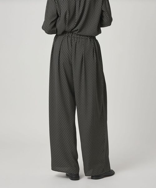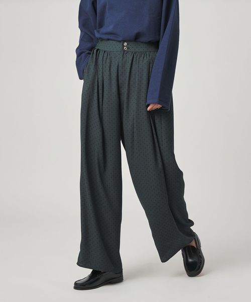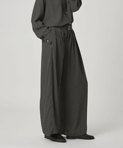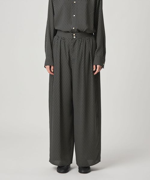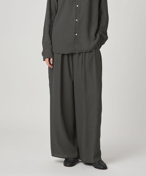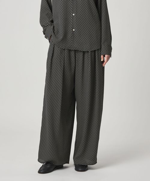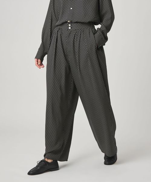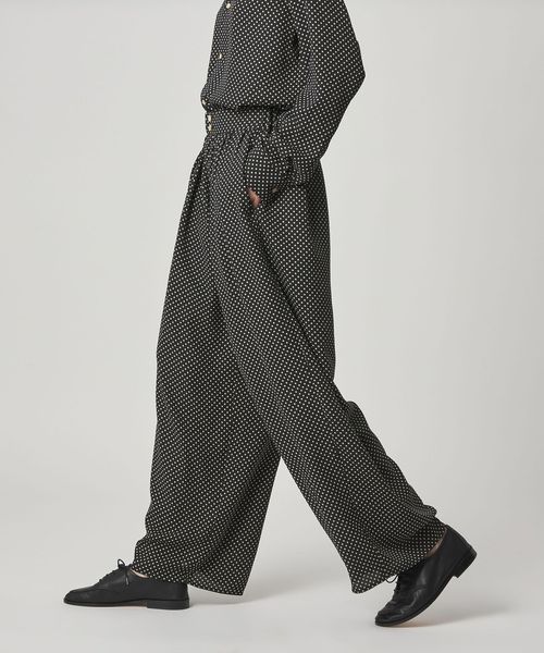 ドットプリントに存在感のあるボリュームシルエットが、レトロなワイドパンツ。