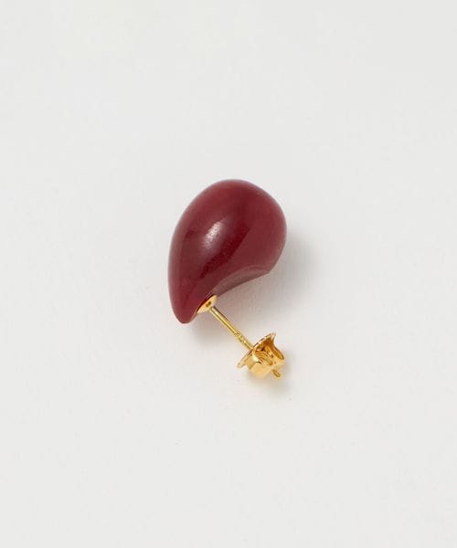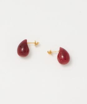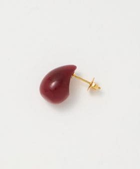 涙型のピンククォーツが存在感のあるスタッドピアス。