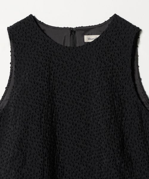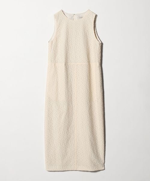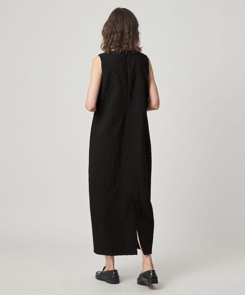 小さなリボンモチーフが表面を彩るジャガード素材を使用したノースリーブワンピースです。