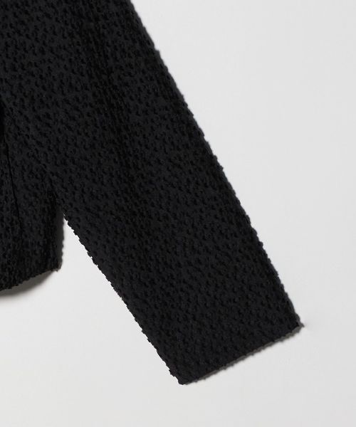 小さなリボンモチーフが表面を彩るジャガード素材を使用したブルゾンです。