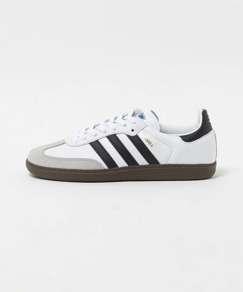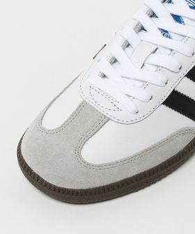 SAMBAのゴールドカラーのロゴやトゥ部分の異素材切り替え、ガムソールなどレトロでスポーティーな雰囲気が特徴のスニーカー。