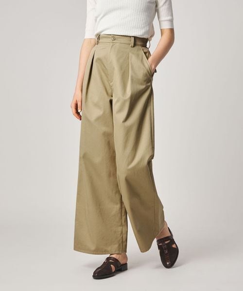 フロントタックに上品なワイドシルエットが魅力の、チノトラウザー。