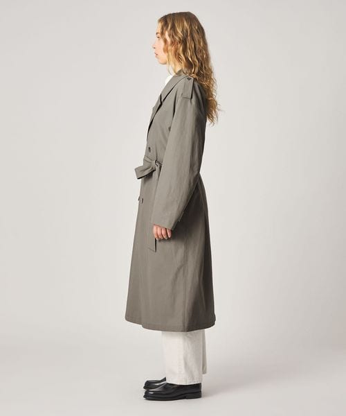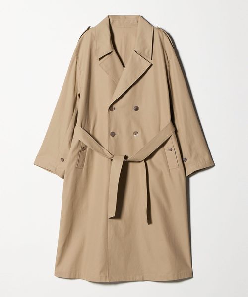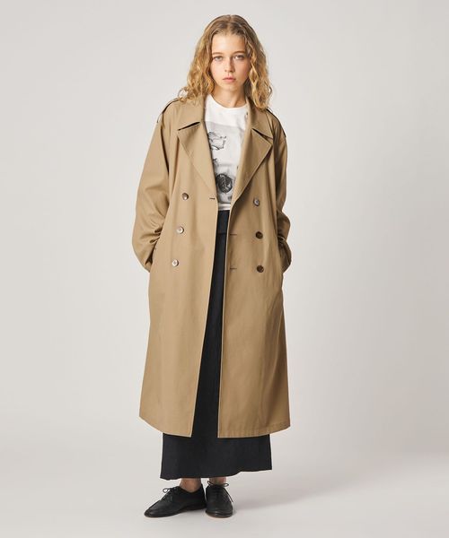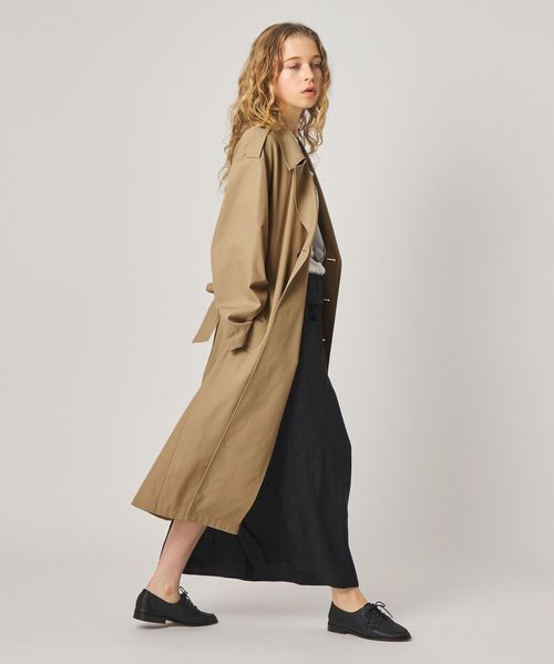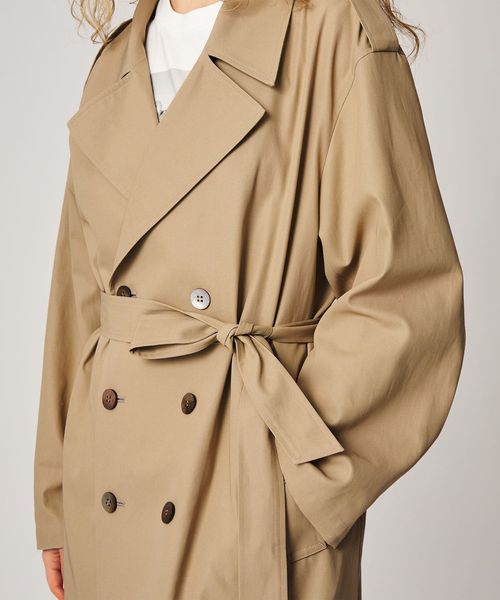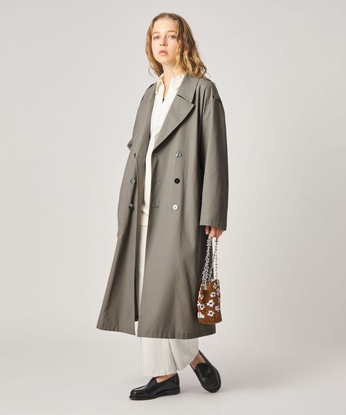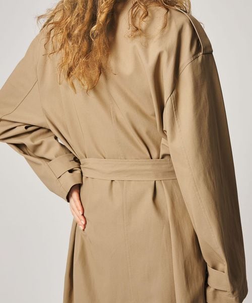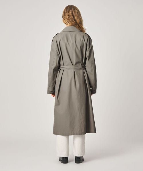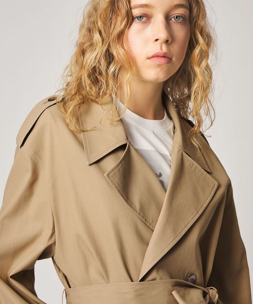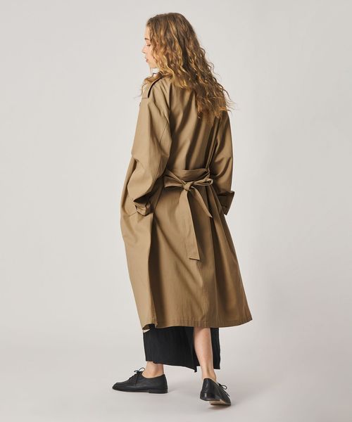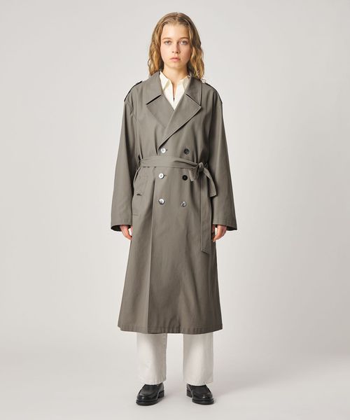 大きめのシルエットながら、無駄をそぎ落としたディテールが際立つ、洗練されたトレンチコート。