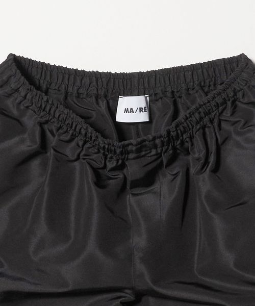 光沢のある素材を使用した、<MA/RE’>のショートパンツ。