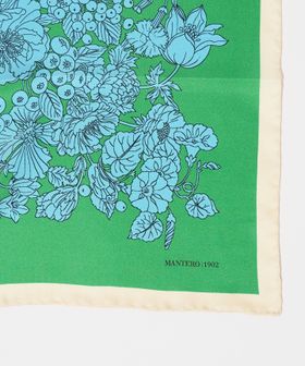 美しい色合いのフラワーモチーフが華やかな<MANTERO 1902>のシルクスカーフ。