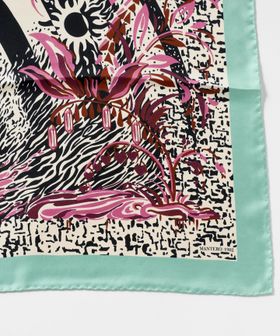 美しい色合いのボタニカル柄が華やかな<MANTERO 1902>のシルクスカーフ。