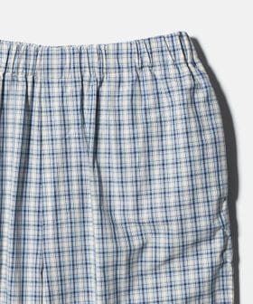 ブルーベースのチェック柄が爽やかなイージーパンツ。