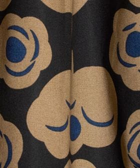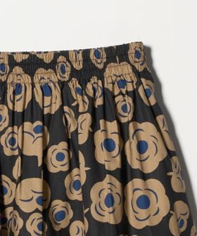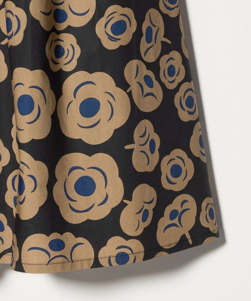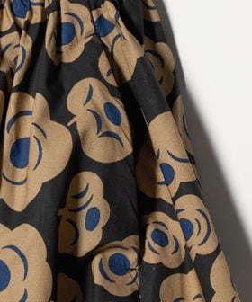 ブラックとベージュ、アクセントカラーにブルーを取り入れたフラワープリントのスカートです。