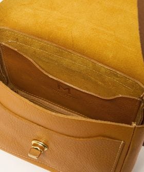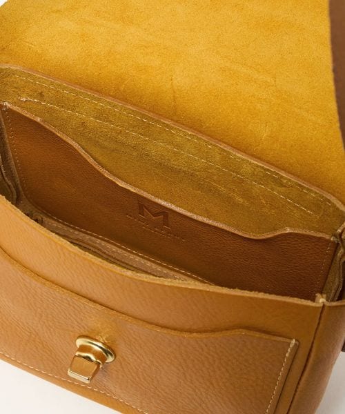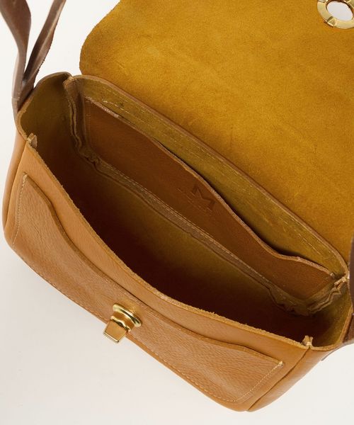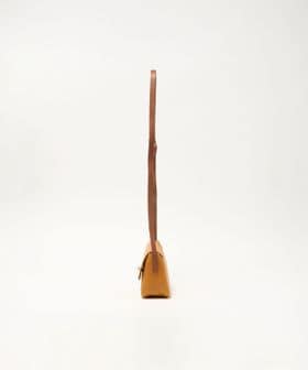 滑らかな曲線を描くフラップに、マチのある小ぶりのデザインが特徴。