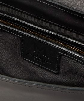 滑らかな曲線を描くフラップに、マチが薄いやや横長のフォルムがどこか懐かしい雰囲気。
