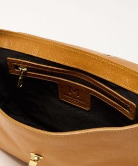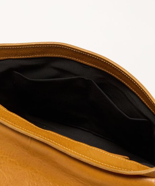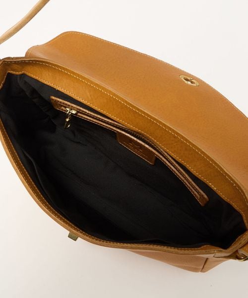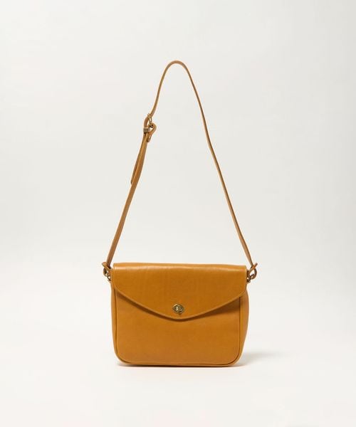 滑らかな曲線を描くフラップに、マチが薄いやや横長のフォルムがどこか懐かしい雰囲気。