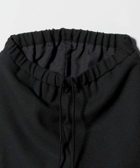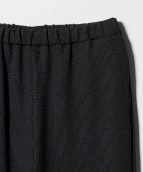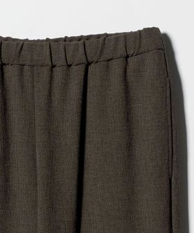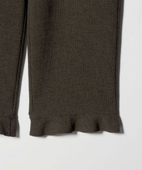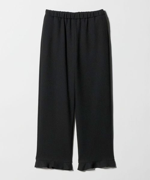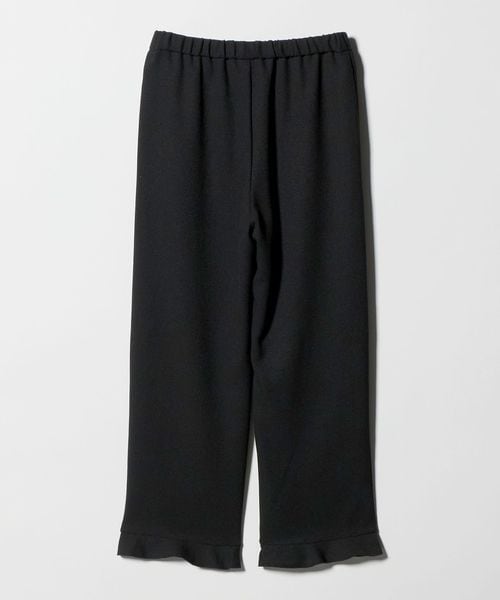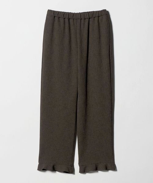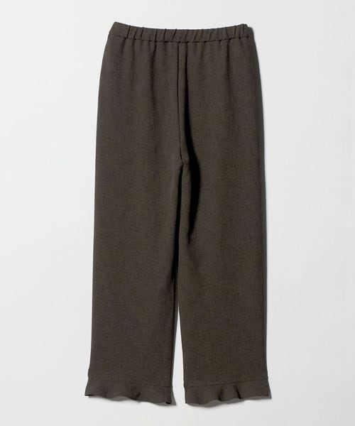 ストレートに落ちるシルエットに裾に共地のフリルを配した、上品なイージーパンツ。