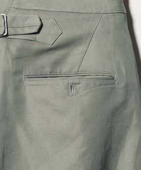 ヴィンテージ感のあるディテールであるバックシンチを付けた、パンツ。