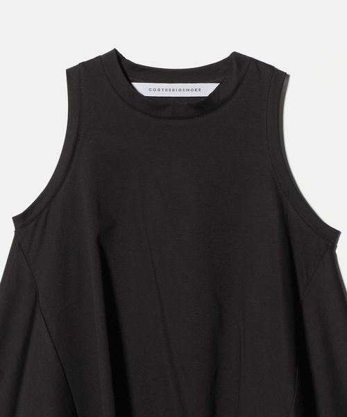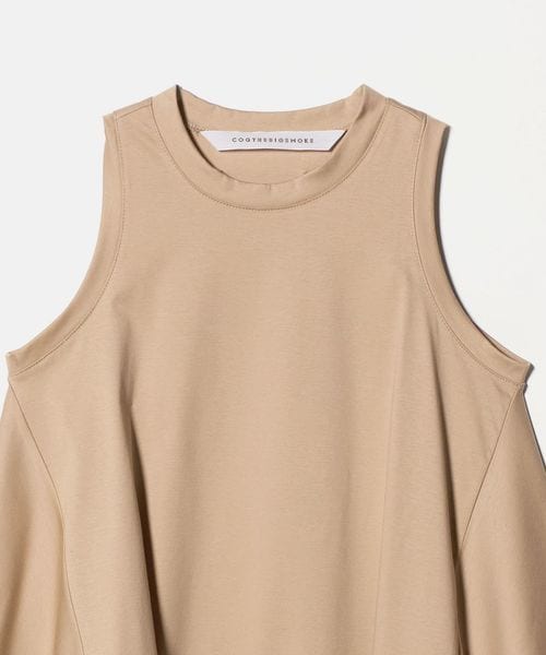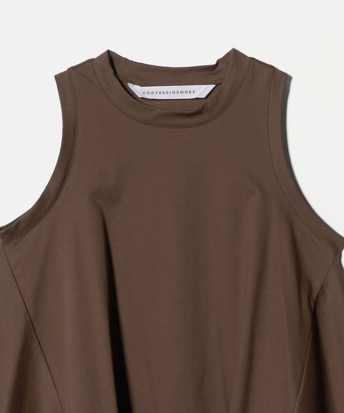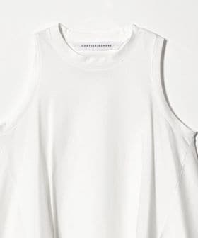程よく詰まったクルーネックで、スリーブレスながら上品に着こなせます。