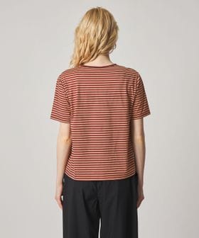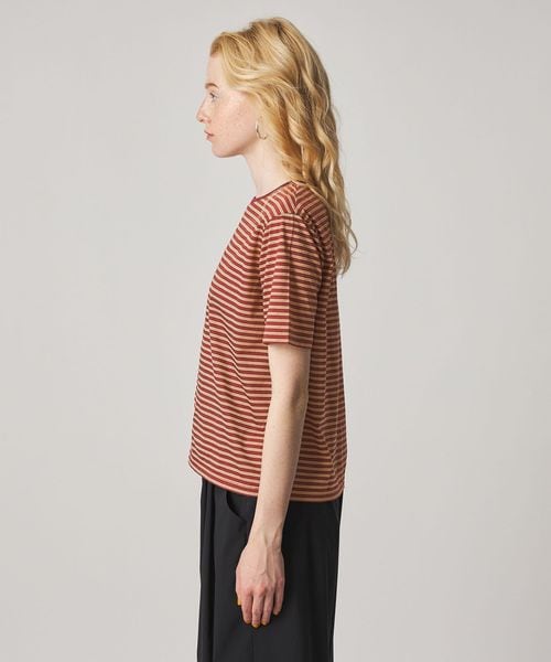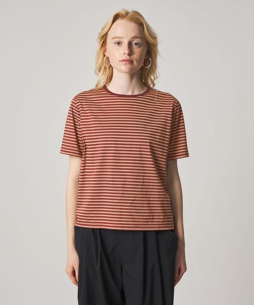 繊細なカラーの組み合わせが目をひく、ボーダーTシャツです。