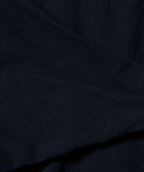 ニュアンスのあるオフホワイトと、深みのあるネイビーの色合いが美しく、古着のような風合いが特徴です。