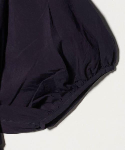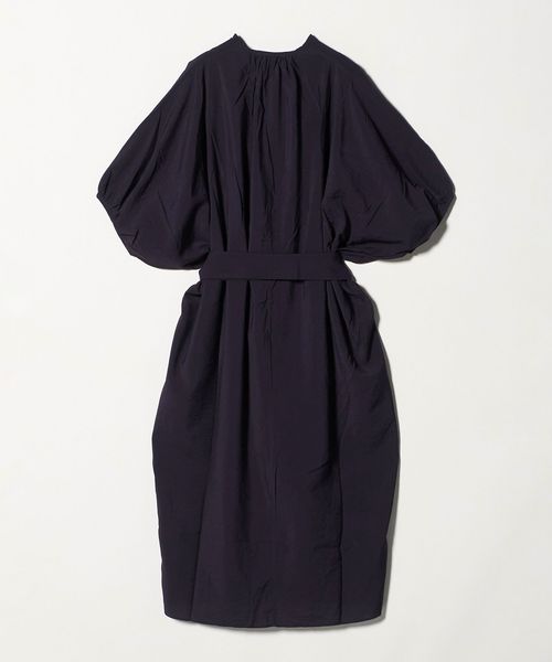 すっきりとしたスキッパーネックに、袖口のギャザー、ウエストのリボンベルトが特徴です。