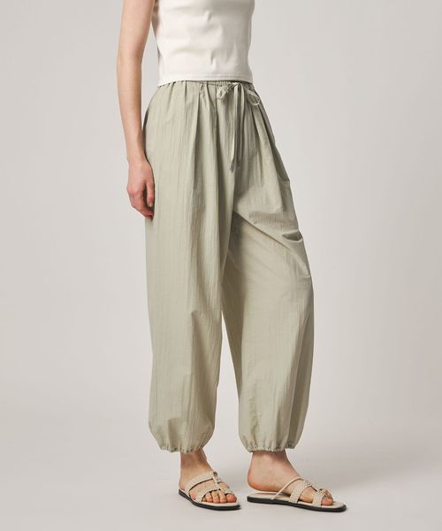 フロントタックと裾のギャザーがふんわりとしたシルエットを生み出す、イージーパンツです。