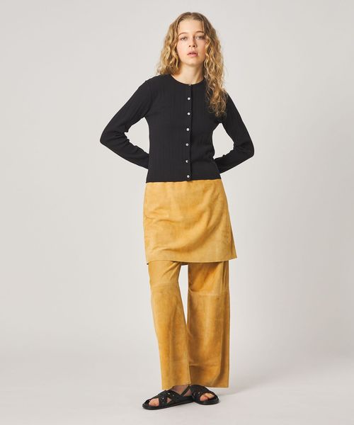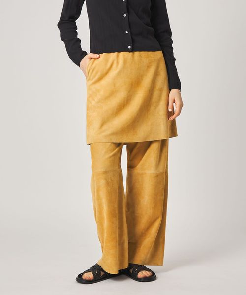 オリジナルで染め上げた鮮やかなクリームカラーが目を引くスエードミニスカート。