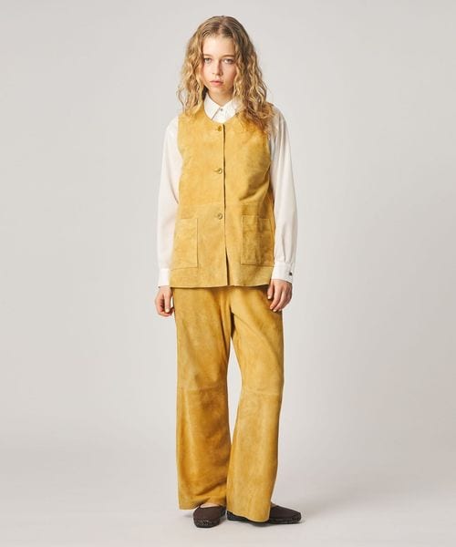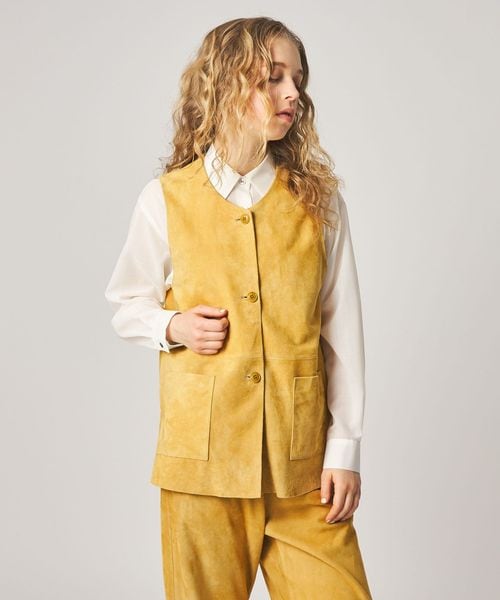 オリジナルで染め上げた鮮やかなクリームカラーが目を引くスエードベスト。