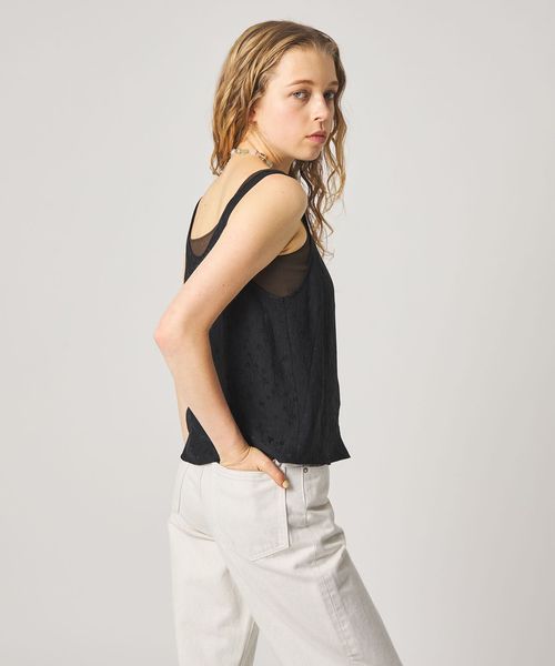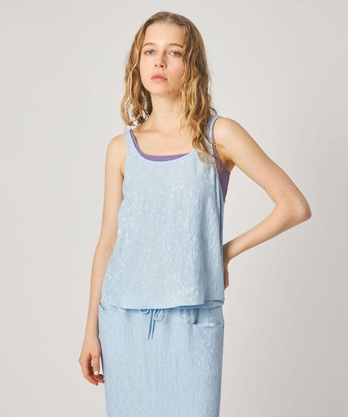 フラワージャガード生地を使用した、ヘルシーな印象のタンクトップです。