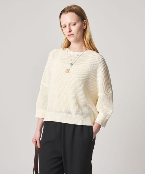 抜け感のあるドロップショルダーとシャリ感のある風合いがリラックス感のある、コットンニットです。