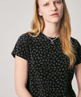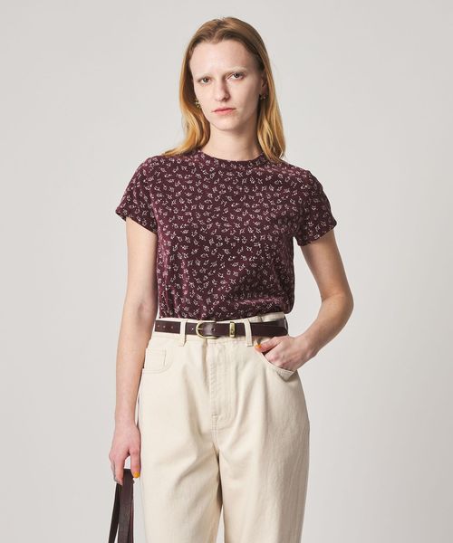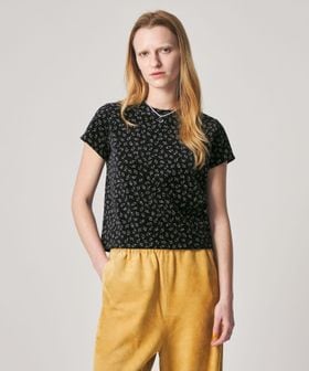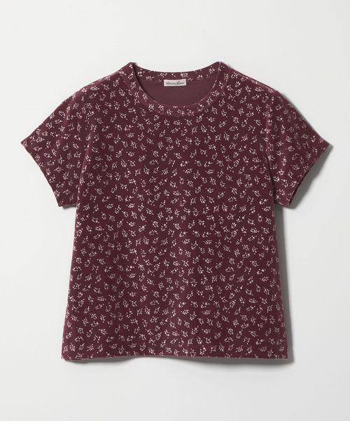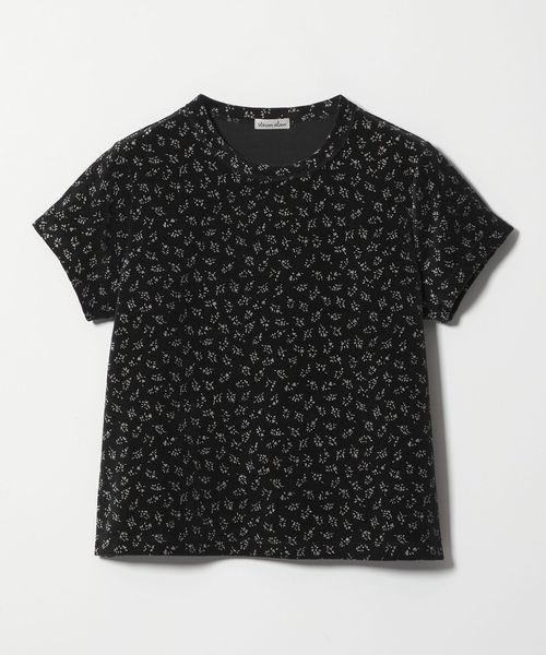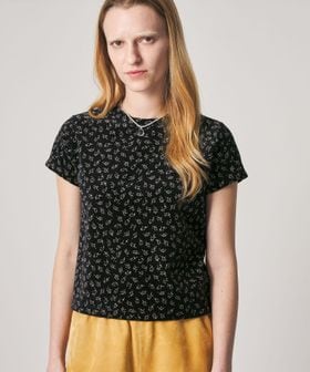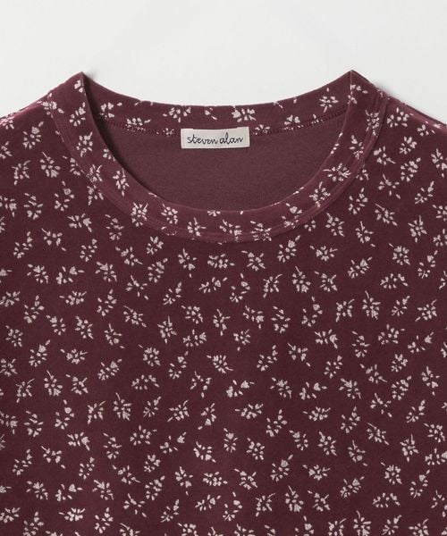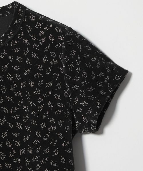 クラシカルな雰囲気の花柄をプリントした、ベロア素材のTシャツです。