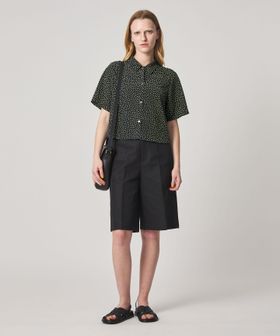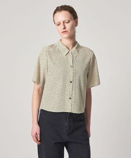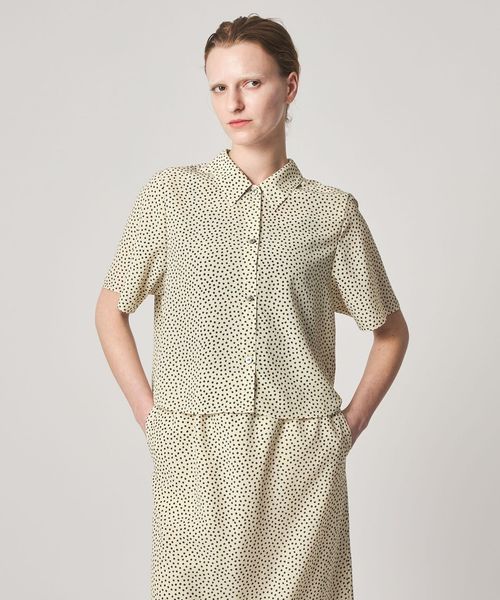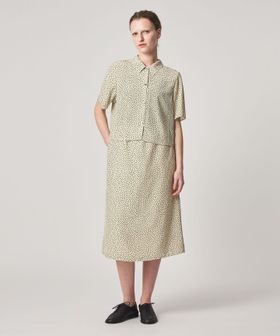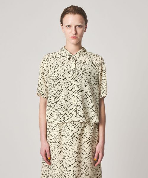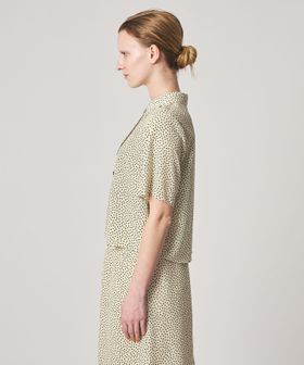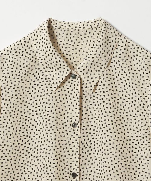 クラシカルなボックスシルエットのレギュラーカラーに、小さな花柄が洗練された雰囲気。