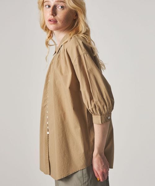 素材はほどよい厚みのコットンポプリンを使用し、洗いざらしのようなナチュラルな風合いが魅力。