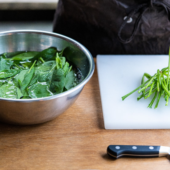 いつもよりも8分早く起きる朝。コーヒーを飲みながらサラダをチャチャッと作り、お腹を十分に満たして出勤する。疲労回復を手助けする鉄分やビタミンB群が豊富に含まれているほうれん草は朝食べるサラダにはぴったり。そこにフルーツを入れると、さらに食べやすくなる。フレンチをベースにしたビストロレストラン<PATH>のオーナーを務め、モーニングも提供するシェフの原太一さんから教わる8分でできるほうれん草サラダのレシピです。