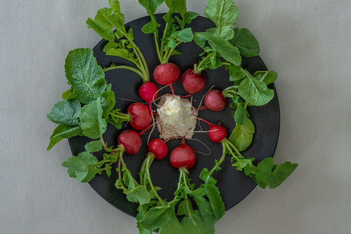 「従来の絢爛豪華な輪島塗ではなく、“普段使い” としての漆器を追求し続ける塗師の赤木明登さんの漆器です。吸い込まれるような漆黒の器は、野菜が持つ自然な色味をさらに引き立たせてくれます。写真は、産地直送のラディッシュ。赤をより赤く、よりフレッシュな印象に仕上げてくれるので、食欲がかきたてられます」