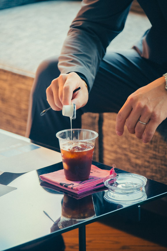 日に日に日差しが強くなるこれからの季節、喉は冷たい飲み物を欲する。でも、すぐに容器は水滴だらけになるし、デスクやテーブルも汚してしまう。そんな時にもハンカチが役に立ってくれる。ユナイテッドアローズのスタッフとの打ち合わせ中、容器周りをサッと拭ってコースター代わりに敷く人を見かけたことがある。その一連の動きはとても紳士的だったし、何よりミーティングテーブルが一枚のハンカチのおかげで華やかになった。美しいマナーのおかげで、いつもより充実した打ち合わせができた気がした。