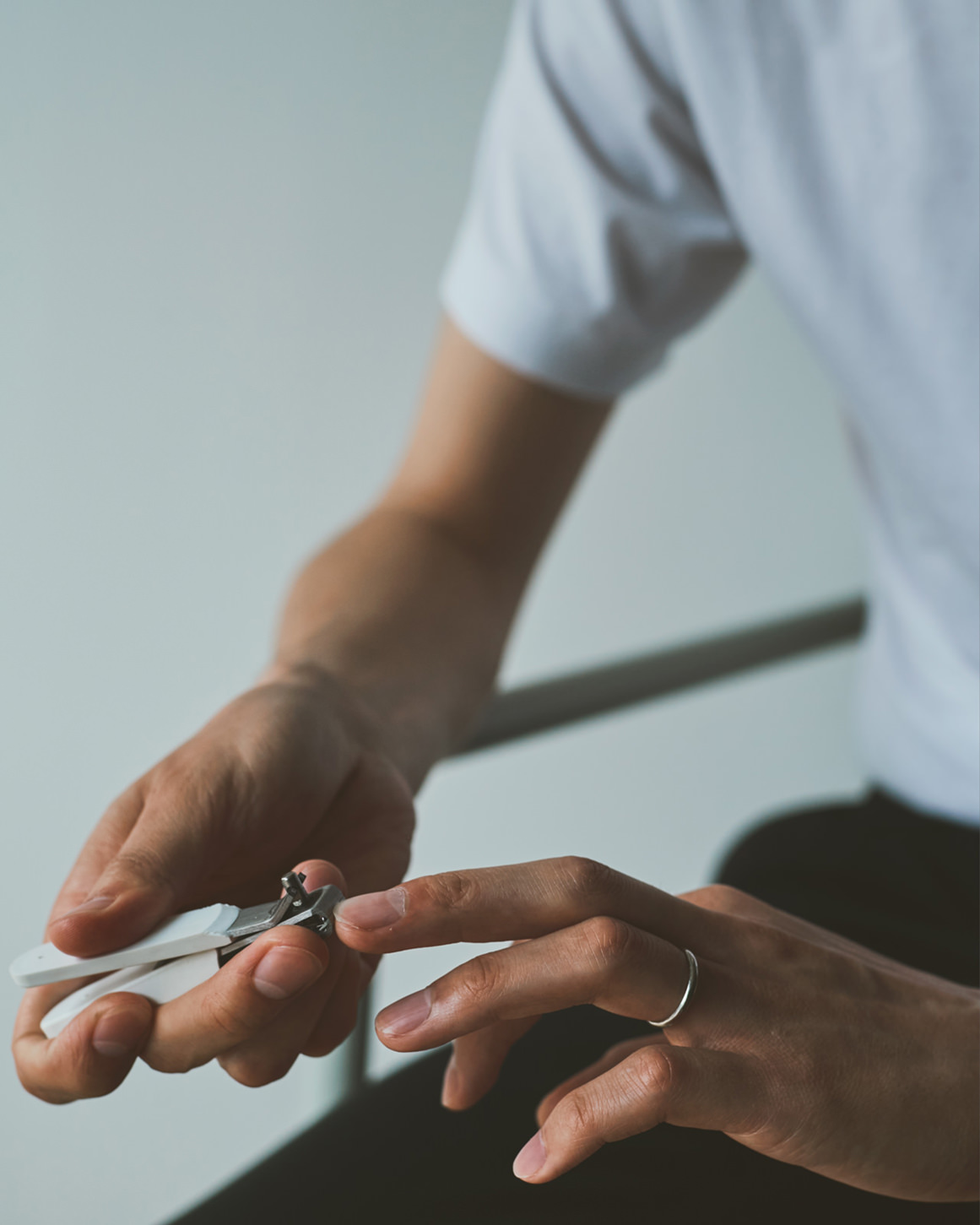 古屋:先ほど使用したニッパー型の爪切りがベストですが、一般の爪切りを使用する場合は、刃を目一杯使って一気に爪を切り落とすのではなく、刃の一部だけを使い、端っこからできるだけ細かく切っていくと、爪にかかる負担も減ります。